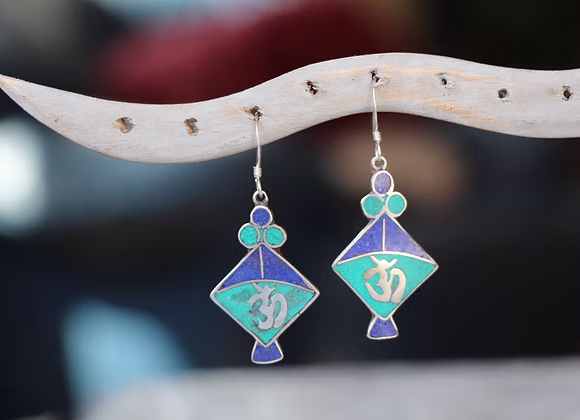 This profound spiritual symbol is beautifully complemented by the combination of two essential Himalayan stones: Turquoise (the stone of protection and the sky) and Lapis Lazuli (the stone of wisdom and truth). Wearing these earrings is a way to invite harmony, deep meditation, and spiritual protection into your daily life.