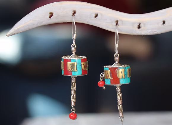 These earrings embody the spirit of continuous movement, prayer, and positive energy. They are a profound reflection of the shared spiritual and artistic heritage across the Himalayan regions, offering the wearer a symbol of protection, peace, and the turning of the wheel of life.